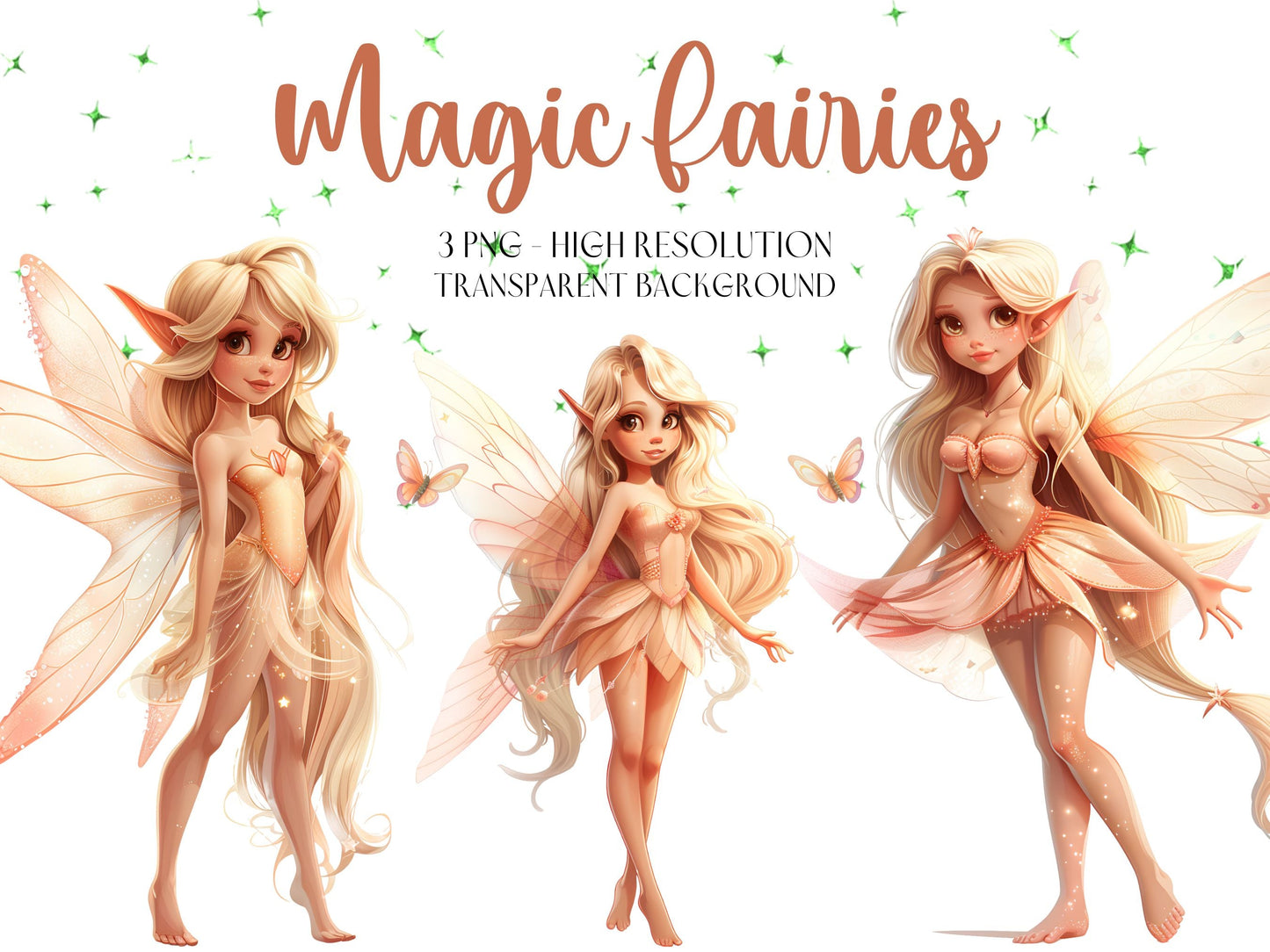 Entra en un fantástico mundo de magia y encanto con nuestra encantadora colección de imágenes prediseñadas PNG de hadas de dibujos animados. Perfecto para agregar un toque de encanto a tus proyectos creativos, este conjunto presenta tres hadas adorables capturadas en colores vibrantes y detalles intrincados.